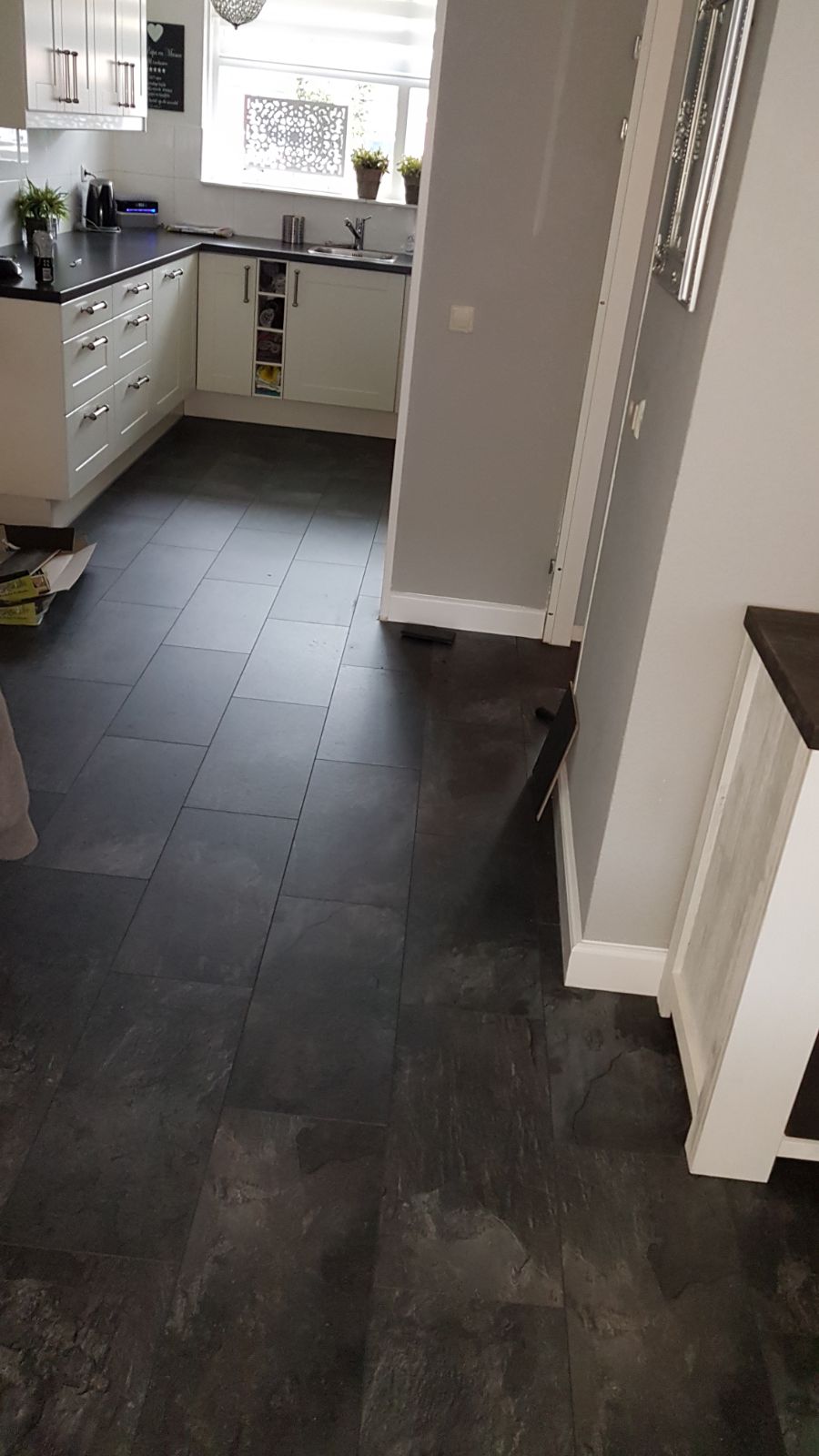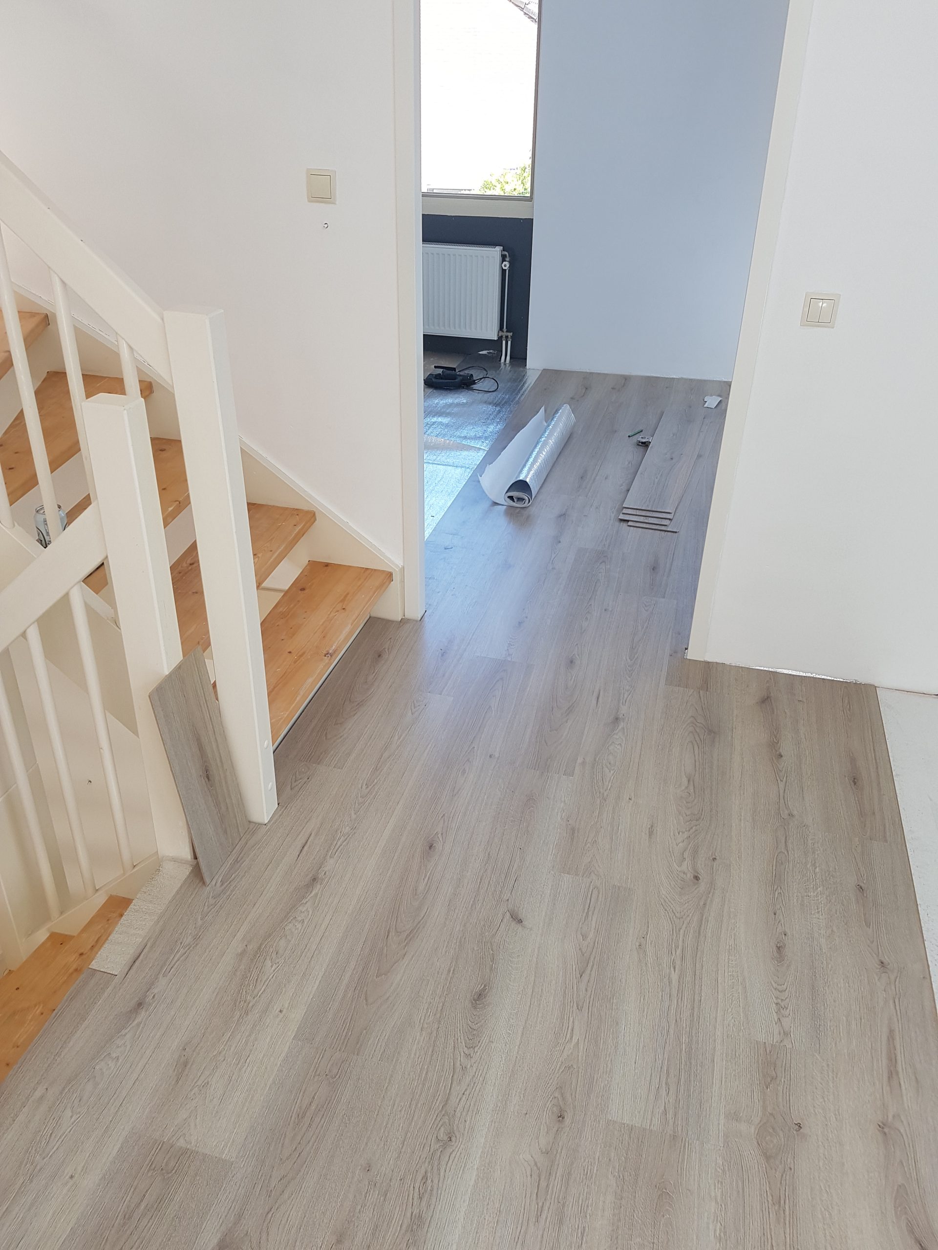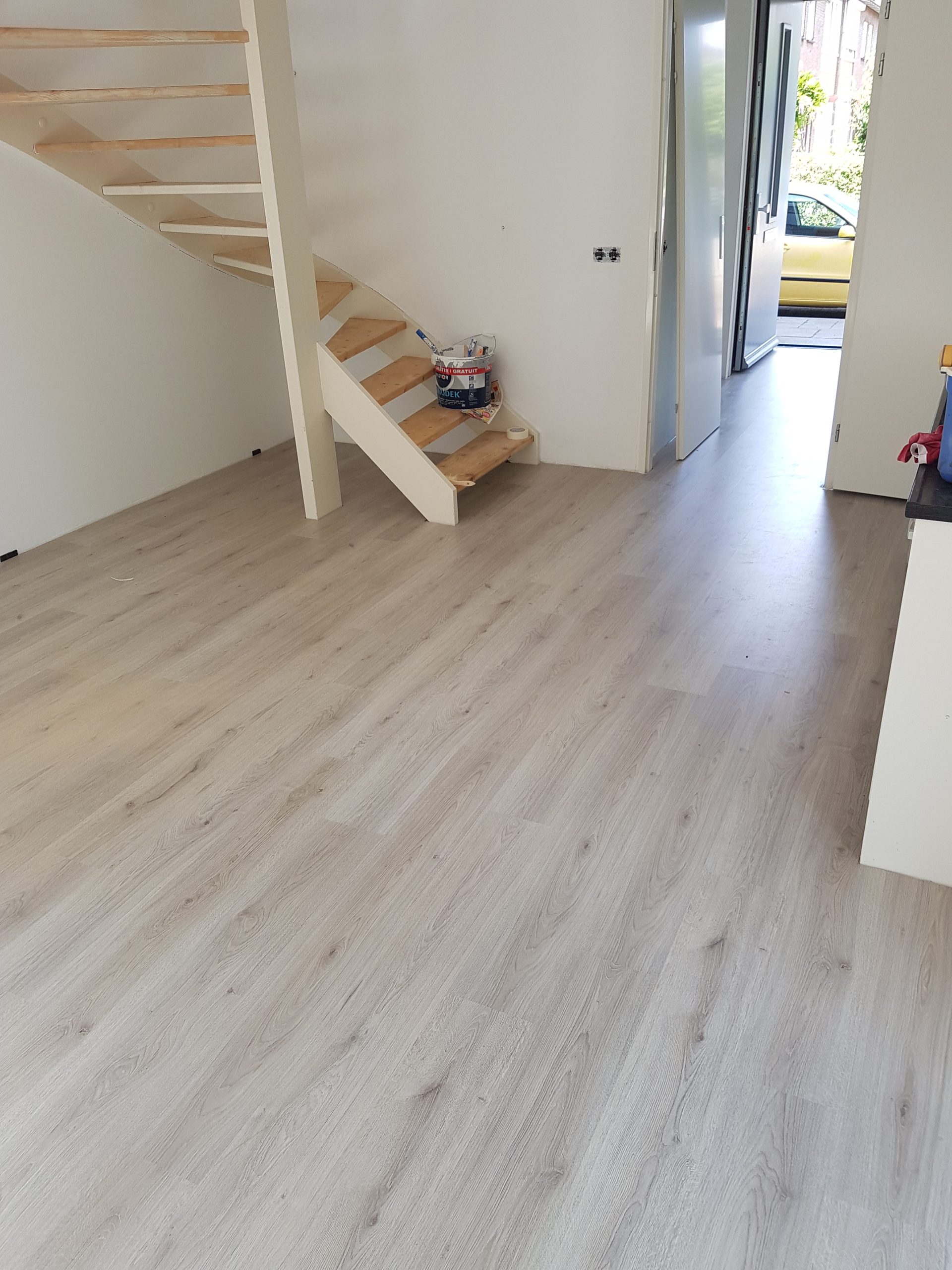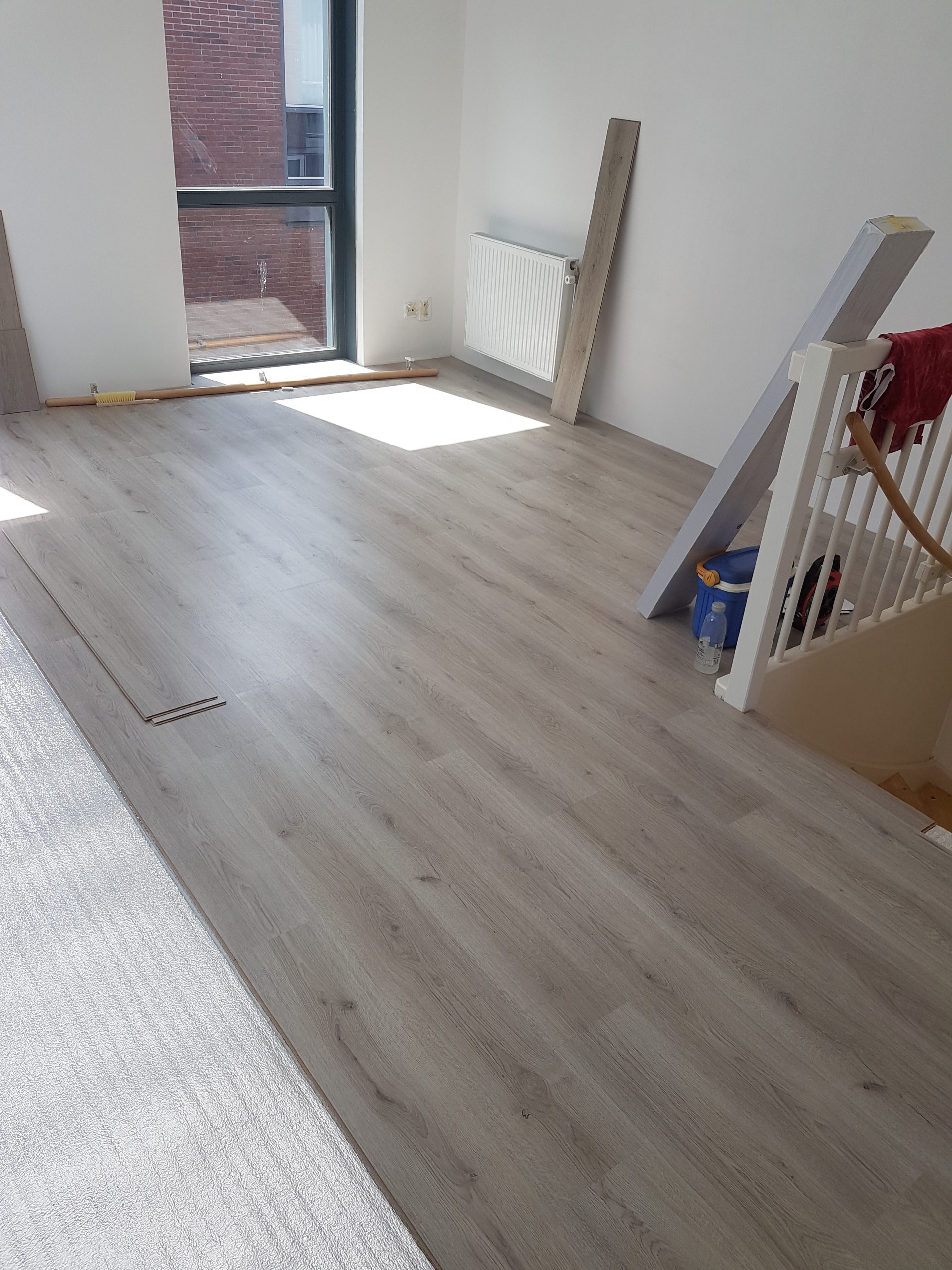 We leggen laminaat in overleg met de klant zoals de richting of structuur en dat natuurlijk met de plinten zowel plakplinten als hoge plinten.